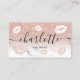An elegant modern, stylish nails business card with elegant name script hand lettering style typography in white on a faux rose gold glitter ombre on modern white marble background and editable lips and kiss. If you need any customization, don't hesitate in contacting me.