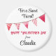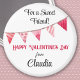 Ideal Valentine's Day round magnet for friends (or change recipient-- teacher, boss, co-worker), decorated with a festive flag banner and script text on a white background. Easily change or remove text using the Template provided. Available in 3 round sizes; 1.25", 2.25" (shown) 3" and a 2" square shape. Printed on 100% recycled paper. Covered with scratch and UV-resistant mylar. See "About This Product" at side for more information.