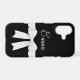 An elegant white bow and ribbon set against a striking black background, featuring a personalized name.