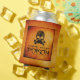 Name your poison! This beverage can cooler design features dark humour - a skull and crossbones set against a distressed gold and orange vintage background with ghoulish words in black. The bottom side also has the same skull image which shows when you drink from the can. Perfect for a Halloween or costume party, it would also make a fun gift or party favour for people who like to live life on the edge.