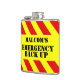 Fun hazard help emergency courage flash, ideal gift for a best man, groom or men in situations that may require a little back up or Dutch courage. personalise with the name and cautionary words of your choice. Currently reads Malcom's Emergency Back Up. Designed by Sarah Trett.
