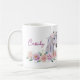 A beautifully handpainted white pony with a floral head decoration and surrounded by a bouquet of pink and purple flowers. Easily edit the name. Named Floral Horse Coffee Mug