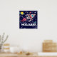 Cartoon graphic rocket space poster. Great to brighten a space themed kids room. Personalise this item with your child's name (up to 7 letters). (***Please note some names will not always fit due to the nature of the font, please contact me and I will be happy to post a poster with your name on). This example reads: William. Uniquely designed by Sarah Trett.