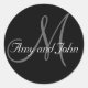 By Elke Clarke©2009. More designs at WhiteWhimsicalWeddings.com and WhiteWhimsicalWeddngs.blogspot.com. The design is simple yet classic and fits with any invitation and wedding theme. THE MONOGRAM GALLERY allows you to customise the names, monogram and colours of this sticker. Just click on the "CUSTOMIZE" button and follow the prompts.