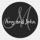 By Elke Clarke©2009. More designs at WhiteWhimsicalWeddings.com and WhiteWhimsicalWeddngs.blogspot.com. The design is simple yet classic and fits with any invitation and wedding theme. THE MONOGRAM GALLERY allows you to customise the names, monogram and colours of this sticker. Just click on the "CUSTOMIZE" button and follow the prompts.