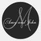By Elke Clarke©2009. More designs at WhiteWhimsicalWeddings.com and WhiteWhimsicalWeddngs.blogspot.com. The design is simple yet classic and fits with any invitation and wedding theme. THE MONOGRAM GALLERY allows you to customise the names, monogram and colours of this sticker. Just click on the "CUSTOMIZE" button and follow the prompts.