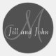 Names & Initial Monogram Wedding Sticker Grey