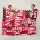 Imagine wrapping yourself in a blanket that not only keeps you warm but also tells your unique story. The distressed names repeated across the vibrant red background create a visually striking and modern aesthetic. The typography design pays homage to retro graphic arts, giving it a timeless and stylish appeal.