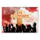 A Christmas card for your nan. A very different Christmas card. Cheering crowds are waving their hands in front of a golden cross. The cross is inscribed with Christmas greetings and phrases in red. In the background is a red sky with swirling crowds and stars. Send a religious message this Christmas with a card that exudes happiness.