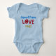Nana and Papa Love Me T-shirts, long sleeve tees, raglan T-shirts, bodysuits, football bodysuits, tutu bodysuits, organic bodysuits, sleeveless dresses, ruffle shirts, ruffle dresses, hats, dark T-shirts, sweatshirts, pullover hoodies, and more for kids, toddlers, and babies with red, blue, and gold text and heart design that reads Nana and Papa Love Me!
