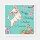 Beautiful turquoise back round with pink floral and adorable white chihuahua wishing Nana a happy birthday. Customise your text for any person, occasion or party.
