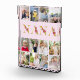 Gorgeous photo gift for your nana. The design features floral letters for "nana" which is printed in gold and decorated with pink lily flowers. The photo template is set up for you to add 12 of your favourite photos, all of which are displayed in vertical portrait format. This grid style photo collage sits on a pink background colour, which you are welcome to edit to any colour of your choice (click "customise further").