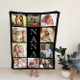 A photo collage keepsake fleece blanket that your grandmother will treasure and enjoy for years. You can personalise with ten family photos. "NANA" is written vertically down the middle in modern white typography on a black background.