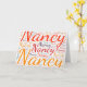 Nancy. Show and wear this popular beautiful female first name designed as colourful wordcloud made of horizontal and vertical cursive hand lettering typography in different sizes and adorable fresh colours. Wear your positive american name or show the world whom you love or adore. Merch with this soft text artwork is a great present, not only in womens history month, or birthday gift.