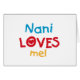 Nani Loves Me T-shirts, cards, stickers, bodysuits bags, and more with colourful red, yellow, and blue text and heart design. These Nani gifts will make nani smile!