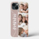 Celebrate her grandma status with this special phone case featuring three treasured photos of her granddaughter, grandson, or grandchildren. The nickname "Nanni" appears along the left side in elegant calligraphy script lettering for a unique personal touch.