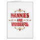 Share how you feel about that special Nanny with this elegant design with gold and red flourishes and the words - Nannies are Wonderful. Makes a great gift.