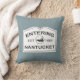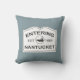 Two designs for the price of one with this reversible pillow of crisp black and white on a calming ocean blue background. On the front, a classic "Entering Nantucket" sign that mimics those wonderful white wooden signs of the region, and on the back, an illustration of a map of Nantucket Island. An original design available exclusively through The Laughing Whale online store.