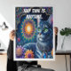 Whimsical Cat Gazing Under a Starry Sky at Midnight. Nap time is anytime.