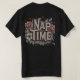 The "Nap Time" t-shirt design exudes a sense of relaxation and comfort, featuring an adorable and sleepy cartoon character nestled in a cosy bed. The character is surrounded by fluffy pillows and soft blankets, with a peaceful expression and closed eyes. Gentle pastel colours and soothing background elements like stars and moons enhance the tranquil vibe. The phrase "Nap Time" is whimsically displayed above, adding to the overall charm. This design is perfect for anyone who cherishes their downtime and the simple joy of a good nap.