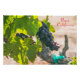 A close-up photograph captures a cluster of ripe, dark purple grapes hanging from a vine. The grapes are plump and juicy, with a slight sheen. Lush green leaves surround the grapes, casting dappled shadows on their surface. The vine itself is gnarled and weathered, suggesting years of growth and production.