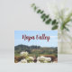Napa Valley, California landscape with vineyards in the background and white flowers in the foreground. The name Napa Valley is at the top in a beautiful script font, and can be edited. Text can be added on the back.
