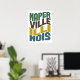 Chunky, bold and fun this cool typographic design says Naperville Illinois in a whimsical way with wavy retro colours in blue, brown, gold and green. Own or give the gift of Naperville, IL today!