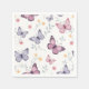 Create a seamless butterfly pattern featuring butterflies in various sizes and wing shapes, fluttering among delicate flowers and leaves. Use a soft colour palette with pastel shades like lavender, light blue, and pale yellow for a whimsical and nature-inspired feel.