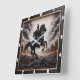 Behold the exquisite clock that captures the essence of valour and gallantry, featuring a striking black and white image of a valiant man astride a magnificent cavalry horse, galloping fiercely across a smoky Napoleonic battlefield. This timepiece is not merely a functional instrument but a testament to the indomitable spirit of the Napoleonic era, framed elegantly by a ½-inch flat black wooden border that enhances its commanding presence. The embedded wood showcases deep carvings with a charred, textured grain, adorned with rugged burn marks in shades of red, grey, and black, creating a dramatic contrast against the lighter wood that evokes the raw power and tumult of battle.