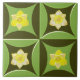 Narcissus in the Hole in the Barn Door Right on the border between cool and warm cooler harmony this designs find itself, similar to spring hot nor cold. The yellows Narcissus and green background works well with the Amish Pattern know as, "Hole in the Barn Door" The pattern also produces a small optical illusion, in that you may have a hard time focusing on the square or circle.