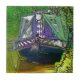 An art design of a narrowboat moored in a peaceful setting on the canal.