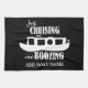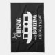 JUST CRUISING AND BOOZING. Funny canal narrowboat drinking quote teatowel. Edit the customisable text to add your boat's name