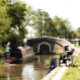 An art design of a narrowboat approaching a lock and a man fishing. Canal boats, known in the UK as narrowboats, were originally used to transport goods around the country. They are now used mainly for leisure and attract people from all over the world to enjoy our rural countryside. These boats look very pretty with their brightly colored cabins, traditionally blue, red or green. Flowers and castle designs also adorn the more traditional boats.