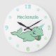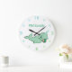 Narwhal Green | Cute Mint Chibi Cartoon Customised Large Clock