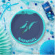 Three narwhals, Monodon monoceros, under the polar ice. Customisable text reading, "NARWHAL" also appears.