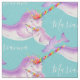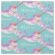 Original watercolor narwhal art personalised name fabric. Cute narwhal rainbow mono tusk repeat patterned fabric. The background colour can be changed if required currently aqua blue-green. Personalise with your own name. Other matching items are available. Original watercolor painting and pattern design by Sarah Trett for www.mylittleeden.com