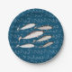 Narwhals Swim Waves Drawing Pattern Whale Blue Paper Plate