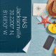 Beach towel with latitude and longitude map coordinates for US Naval Air Station NAS Jacksonville in Florida Roboto style white font on Navy blue background.