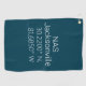 Golf towel with latitude and longitude map coordinates for US Naval Air Station NAS Jacksonville in Florida Roboto style white font on Navy blue background.