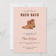 Pink background Watercolor Cowgirl boots Bachelorette weekend invitation with event in the back.