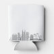 Help your wedding guest keep their hands dry and their drinks cool with this unique deco skyline-themed can cooler tailored specifically to your future wedding or family reunion in the beautiful city of Nashville, Tennessee. They feature a greeting across the top, followed by the city name and wedding/family reunion date. This is followed by the names of the bride and groom or family in a unique and complimentary open-line style font. Towards the bottom of the can cooler is a stylised illustration of the city itself and it's