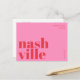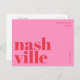 Send a stylish and contemporary greeting from Nashville, Tennessee with this modern typographic postcard. Featuring the word Nashville split across two lines in bold, decorative lowercase letters in bright red on a soft pink background, this design is both minimalist and eye-catching. The phrase "greetings from" appears above in a sleek, thin sans serif font, adding a modern, elegant touch. Perfect as a travel keepsake, a decorative piece, or a unique way to send love from your favorite city. Ideal for fans of contemporary design, typography, and wanderlust.