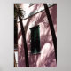 This poster features a dry-brushed photograph taken in Nassau, New Providence in the Bahamas. The building is the public library, a lovely structure in pastel pink, white, and green. The surrounding palm trees cast graceful shadows against the stucco walls.