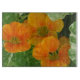 This quality glass cutting board features warm cherry nasturtium flowers that are pretty to look at and nutritious to eat. These glass cutting boards are also great for using as a decorative piece on a table top to protect the table.
