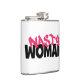 The flask itself is fine. It’s a cheap flask, obviously bought in bulk, however am prepared to overlook that. Given that it is a personalized item, I would have liked to have seen gift boxing instead of the generic packaging. Terrible printing, and/or quality. It’s a cheap, tacky vinyl. It is not cut straight and is also applied in a way that it is overhanging the bottom, causing the glue to catch on items and it will eventually roll and tear, damaging the wrap.