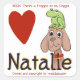 These are "I heart Natalie" stickers with the darling image of the doggie with the froggie on his head taken from Billie Webb's book "There's a Froggie on my Doggie." Little girls will love to decorate with these stickers! Copyrights are owned by Wooli Labs, LLC.