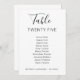This modern, black and white, table seating chart has a neutral, minimalist feel to it. It features a simple, yet stylish, sans serif font embellished with handwritten calligraphy script. The chart includes a list of your guests' names in alphabetical order. At the bottom are your names and wedding date. Change the table number on each card and add to your cart individually using the text template. Designed to match our modern Natasha wedding collection. Be sure to browse the other matching items in the collection to create a chic, coordinated look for your wedding day. If you need help customising this sign or would like me to create other matching products, please contact me at admin@albamarie.com. I'd be happy to help!