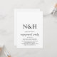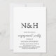 Modern engagement party invitation featuring a simple and minimal black and white design with your monogram in a bold font along with the event title in an elegant handwriting script.