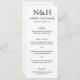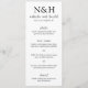Modern wedding menu featuring a simple and minimal black and white design with your monogram in a bold font along with your names in an elegant handwriting script.