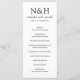 Modern wedding program featuring a simple and minimal black and white design with your monogram in a bold font along with your names in an elegant handwriting script. Below is your order of ceremony and the back has your wedding party and thank you message.
